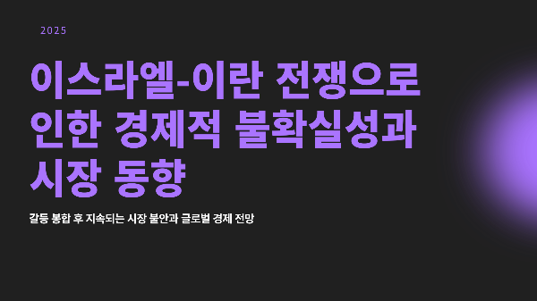 이스라엘과 이란의 전면전이 휴전에 돌입하면서 전 세계는 일시적 안도감을 느끼고 있습니다. 그러나 갈등의 뿌리가 해소된 것이 아니라 잠시 봉합된 것이라는 점에서, 경제적 불확실성은 여전히 시장을 지배하고 있습니다.